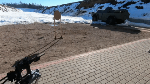 视频背景中的装甲车,为苏联制BRDM-2A或BDRM-2M装甲车。枪的型号为俄制的PP-19-01“勇士”冲锋枪。