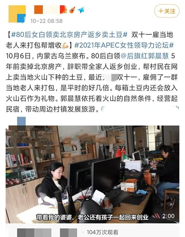 前阵子北京80后白领卖掉自己的北京房产回到内蒙古老家卖土豆,引起一阵舆论轩然大波,而现实确实她用自己的能力发展了电商,将自己家乡的货卖到了世界各地,同时发展民宿,带动了整个当地的发展。