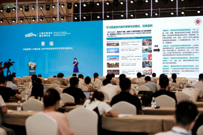在城市更新论坛上,中指控股CEO兼副总裁、中指研究院常务副院长黄瑜女士发布《2022重庆城市更新发展报告》并作主题演讲。