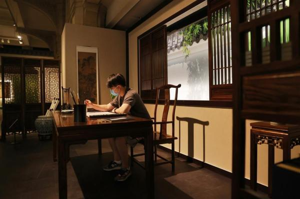 牡丹亭戏台、竹林对弈、曲水流觞……7月28日,走进上海市历史博物馆,仿佛置身江南婉约美景。