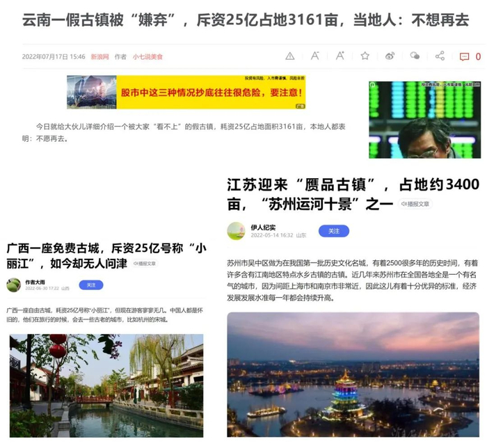 在伟光汇通全国各地兴建的“假古镇”、“假古城”中,类似的吐槽并不鲜见。