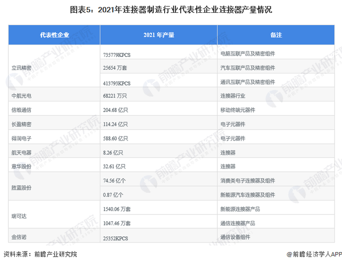 更多本行业研究分析详见前瞻产业研究院《中国连接器制造行业市场需求与投资战略规划分析报告》,同时前瞻产业研究院还提供产业大数据、产业研究、政策研究、产业链咨询、产业图谱、产业规划、园区规划、产业招商引资、IPO募投可研、IPO业务与技术撰写、IPO工作底稿咨询等解决方案。