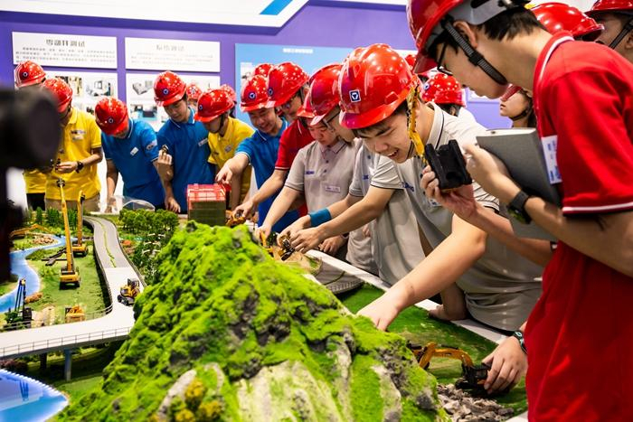 在游戏互动环节,同学们亲身试乘挖机并打卡留念,感受大国重器的力量;与挖掘机竞技投篮,领略“钢铁柔情”;团队协作“掘金寻宝”体验挖掘乐趣;与技能大师面对面,在DIY挖掘机中学习科学原理。体验项目精彩纷呈,每一个环节都留下同学们的欢笑,每到一处,都洋溢着师生们对大国重器的感叹,对智能制造的赞美。