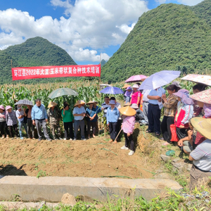 图为河池市环江县大豆玉米带状复合种植技术培训现场