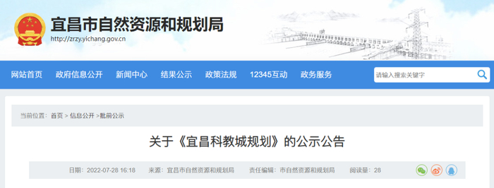 关于《宜昌科教城规划》的公示公告