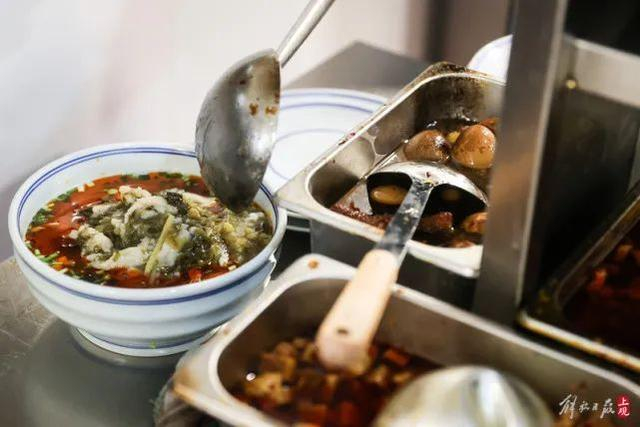 店里的焖肉、笋丁辣肉、爆鱼等冷浇,猪肝、大肠、腰花等热浇,都是上海人很喜欢的传统浇头,自己家烧不来,喜欢在饭店里面点。