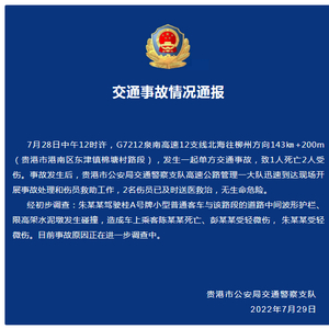 7月29日,广西贵港警方向红星资本局确认了这起车祸,表示目前尚未对外发布,不方便透露具体情况。贵港交警还表示,请等待后续警情通报。