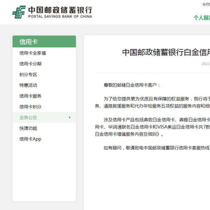 最新!中国邮储银行发布重要公告!事关白金信用卡权益……
