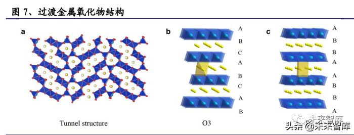 总体来看,层状氧化物在三种最有前景的材料中展现了最高的理论比容量,但稳 定性较低;聚阴离子具有较低的理论比容量,但结构稳定;不同种类普鲁士化合 物的理论比容量相差较大,但总体理论比容量较高且稳定性良好。三种类型的材料 的实验比容量基本都在 100-200mAh/g 之间。钠离子电池正极材料对纯碱需求构成明确利好。即使各厂商正极技术路线有分化, 但正极材料中的钠元素必有其来源。纯碱作为生产工艺成熟、产能充足的大宗化 工原料,将大规模应用于钠离子电池。根据宁德时代和中科海钠专利,与锂离子 电池需要碳酸锂作为正极材料前躯体类似,纯碱(碳酸钠)作为钠离子电池重要 的正极材料前躯体,长期有望受益于钠离子电池发展带来的需求利好。(报告来源:未来智库)
