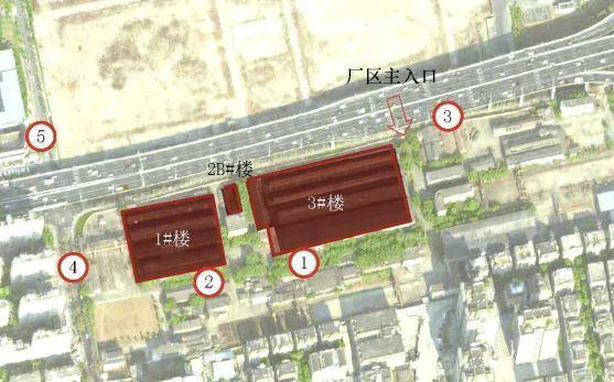保留厂房位置图(园区1#楼、3#楼、2B#楼被评定为不可移动文物)