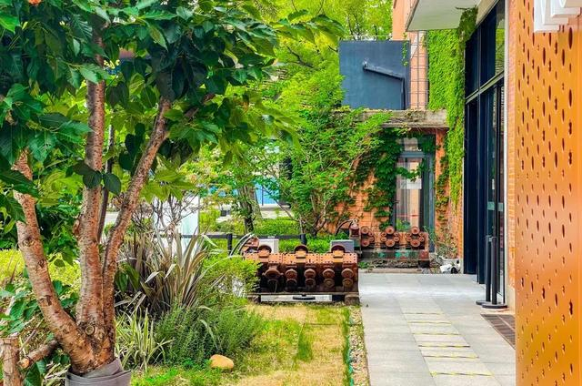 工业印记也同样渗透在整体环境中,无论是艺术装置、小型绿化或是木质座椅,都有精心的设计。