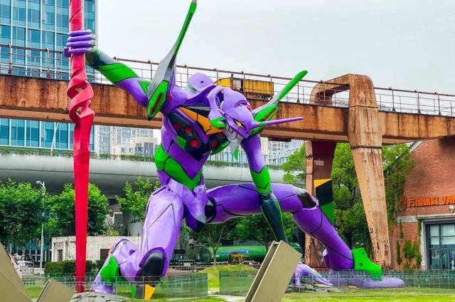 没错,这就是《EVA(新世纪福音战士)》,自1995年上映至今二十余载,是日本三大“现象级动画”之一。2017年,“EVA初号机”等一系列知名动漫IP落户上海静安新业坊。这座“EVA初号机”现已被吉尼斯世界纪录权威认定机构认定为目前世界上最大的动漫雕塑。