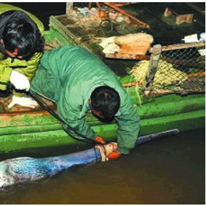 2003年1月24日下午,宜宾市南溪县(现南溪区)罗龙镇一位渔民作业时,误捕到一条白鲟,这是一条3米多长、体重近200公斤的白鲟,肚子里有大量鱼卵,是一条怀孕的母鲟,受伤严重。
