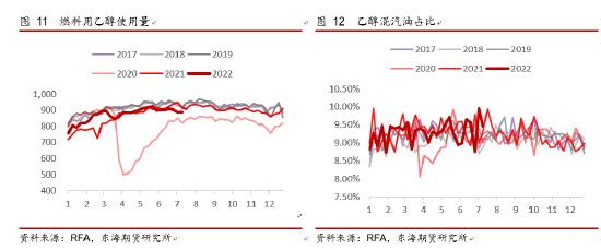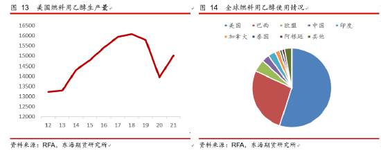 所以综合来看,短期E15的大范围使用概率仍然较低,从推广不同品类汽油的路径去影响汽油用量的实质效果也不会很好。而美国已经占据了燃料用乙醇产量的半壁江山,其他国家沿用该政策的影响力会更加有限,此政策性影响点对于后期实质汽油用量的影响可能比较小。