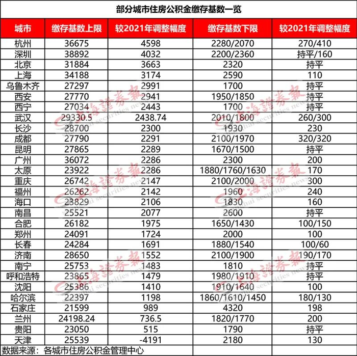 据上海证券报记者不完全统计,截至目前,已有北京、深圳、杭州、乌鲁木齐等近30个城市发布了2022年度住房公积金缴存基数调整的方案,多地上调了缴存上限。
