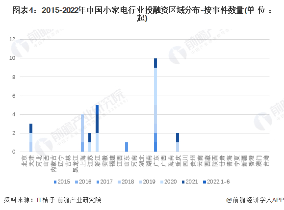 3、小家电行业投融资集中在广东、浙江及上海