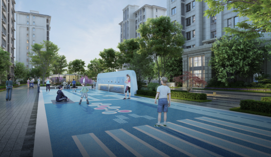 小区内部还打造了全龄健康跑道、全龄儿童活动区、景观会客厅等。