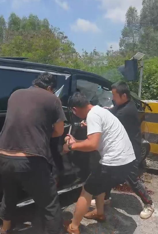 根据网传视频显示,一辆雷克萨斯LM在高速路上发生碰撞事故后,车头位置受损,前排气囊已经完全展开,车内有三人被困。有其他路过车主看到情况后,陆续召集人前去营救。通过一番辛苦营救后,主驾车门被打开,司机得救,而副驾车门却无法撬开,众人只能砸开副驾玻璃将一女性乘员从车窗位置拉出。不过,在营救过程中,车头位置冒烟情况愈发严重,逐渐起火,而后排却还有一位女性乘员处于昏迷状态被困车中,有人尝试从车尾门窗户入车内营救,但车内火势变大救援被迫中止,视频也就此中断。