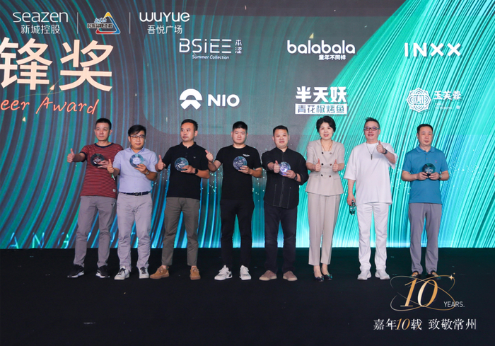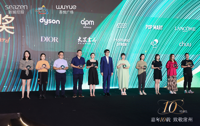 随后,大会上还举办了颁奖活动,面向优秀的品牌商家,颁发“别具匠心、开拓先锋、精诚合作、拾年特别”四个奖项,殷切表达了吾悦广场常州区域对各大品牌商家的感恩之情,也倾注了特别的期待,未来将持续携手更多品牌商家共创共赢。