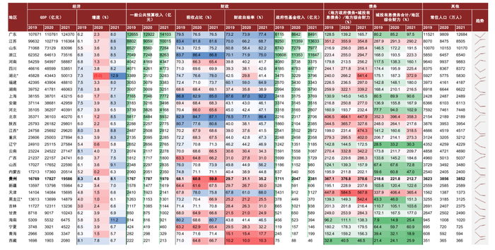 图表1:全国各省及自治区经济财政债务水平一览