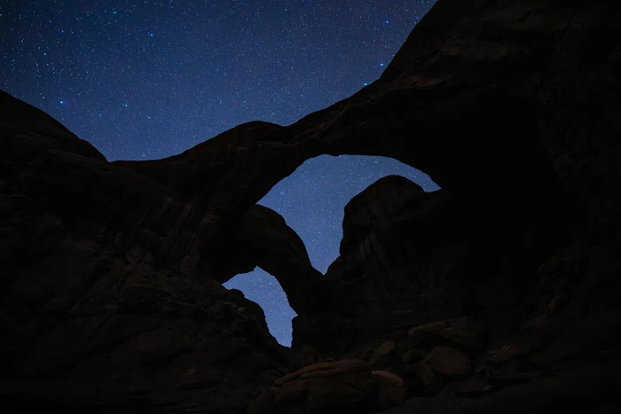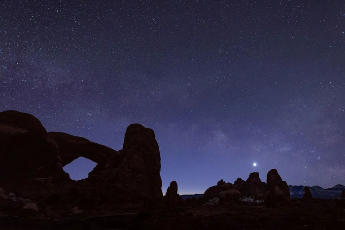 了解这些统计数据后,去年十月,我仰躺在犹他州拱门国家公园(Arches National Park)长长的石板上,再次仰望天空,周围都是陌生人。我想寻找昴星团(也就是大家所说的七姐妹星团)和离我们最近的旋涡星系。这是疫情暴发两年来我第一次旅行,想找一个给人新鲜和超凡脱俗之感的地方。事实证明,这是犹他州,这里有不可思议的钴蓝色天空,夜晚碰巧也闪耀着璀璨的星星。