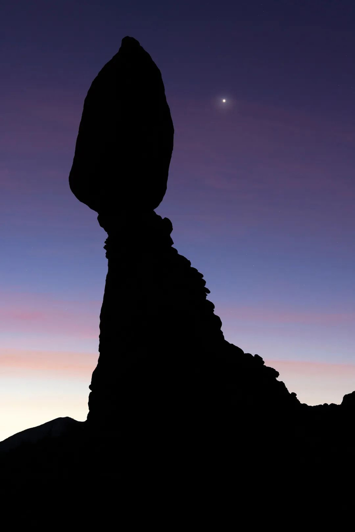 太阳即将升起时的金星和平衡石。
