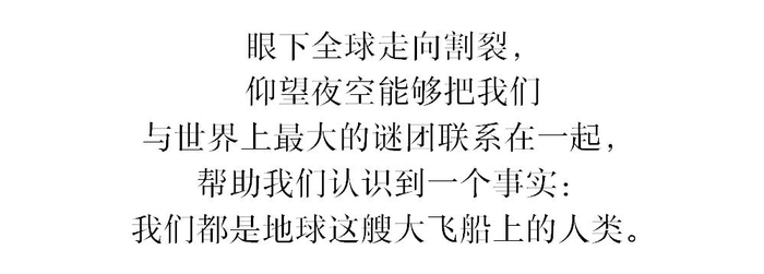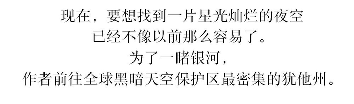 我放下手机,抬头望向天空,发现我原以为又长又高的蛛丝状云团实际上是组成银河的尘埃、气体和几十亿颗恒星。接下来一个小时里,银河的身影清晰起来。它是我见过美得最惊心动魄的事物之一,有些地方略微泛白冒泡,有些地方则能看到紫色和灰色的支流从中心涌动出来。北方、南方、东方和西方的概念模糊了,这一刻地球变得无关紧要。我又在这里待了至少一个小时,因为我知道,我可能近期再没有这样的机会了。