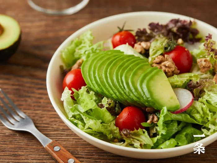 牛油果切片或者切块,拌入沙拉,好吃、营养又饱腹。是很多健身人士、时尚博主都热衷的轻食选择。