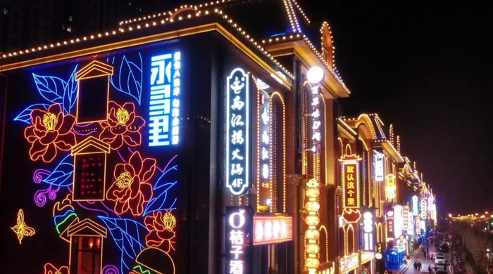 在塔北路,永昌里拥有长达1000米的法式风格大理石外立面及特色店招灯光呼应,璀璨夺目的夜景成为省会夜经济亮丽风景线。