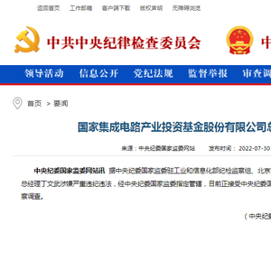 据中央纪委国家监委驻工业和信息化部纪检监察组、北京市监察委员会消息:国家集成电路产业投资基金股份有限公司总经理丁文武涉嫌严重违纪违法,经中央纪委国家监委指定管辖,目前正接受中央纪委国家监委驻工业和信息化部纪检监察组纪律审查、北京市监委监察调查。