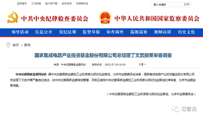 2022年7月30日消息,日前传闻的国家集成电路产业投资基金(以下简称“大基金”)总裁丁文武被调查的消息,今日得到了官方的进一步确认。