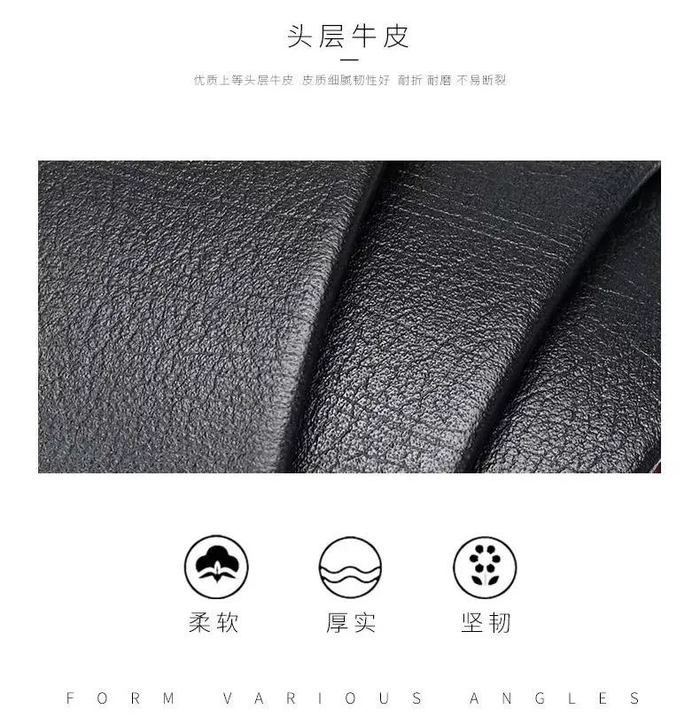 这款皮带的带身也选用了头层牛皮革。