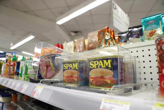 据报道,在纽约港务局巴士车站的连锁商店杜安里德(Duane Reade),每罐售价3.99美元(约合人民币26.9元)的斯帕姆午餐肉(SPAM)、每罐仅售1.89美元(约合人民币12.7元)的StarKist金枪鱼罐头,以及其他罐头食品如今正被装在塑料防盗盒里锁上。