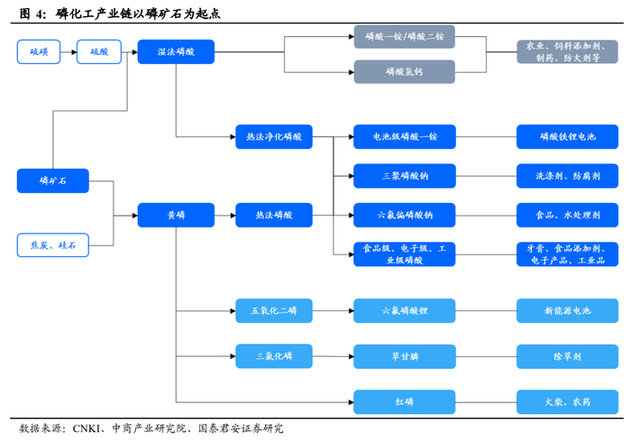 磷矿石是磷化工产业链的起点,可用来制作化肥、黄磷及其磷化合物等,广泛应用于农业、养殖业、化工等领域,锂电池高景气逐渐增加磷矿需求。据悉,磷矿石经过我国这么多年的开发,优质资源已经被消耗得差不多,主管部门逐渐加大对磷矿石资源的控制力度,产业链扩张受限。