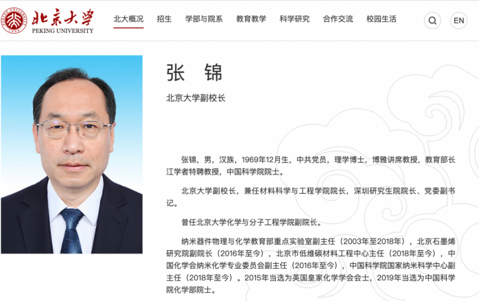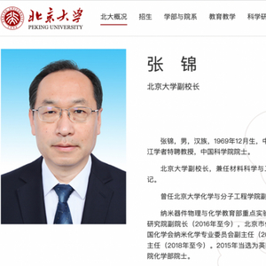 据北京大学官网“现任领导”栏更新信息显示,中国科学院院士、北京大学深圳研究生院院长张锦正式出任北京大学副校长。