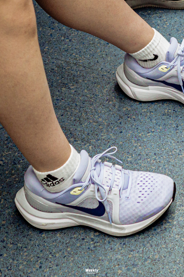 在超过40分钟通勤路的持久战中,一双舒适柔软运动鞋是深圳地铁人必备的战斗装备。
