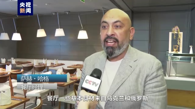 餐厅经理 萨赫·哈格:餐厅的一些基本食材来自乌克兰和俄罗斯,一部分鸡肉和油来自乌克兰,另外一部分烹调和调味用油以及腌制菜来自俄罗斯。
