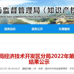 浙江省温州市市场监督管理局经济技术开发区分局2022年第一期食品安全监督抽检结果公示