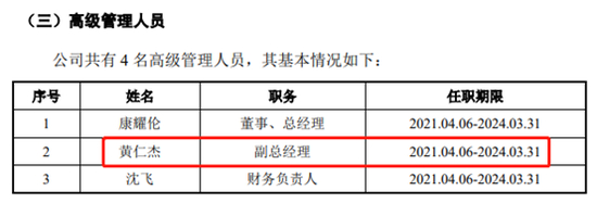 但惠柏新材2022年7月25日的公告显示,公司董事会于2022年7月22日收到副总经理黄仁杰递交的辞职报告,自2022年8月31日起辞职生效。黄仁杰辞职后不再担任公司其它职务。