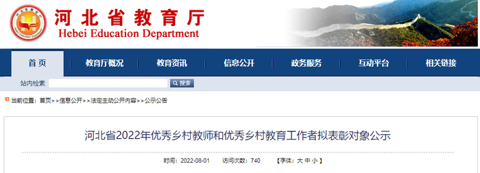 河北省教育厅网站最新公示!经各市择优推荐,专家评选委员会推选,并征求相关厅局意见,推选出2022年河北省优秀乡村教师和优秀乡村教育工作者拟表彰对象。唐山上榜的有↓↓↓