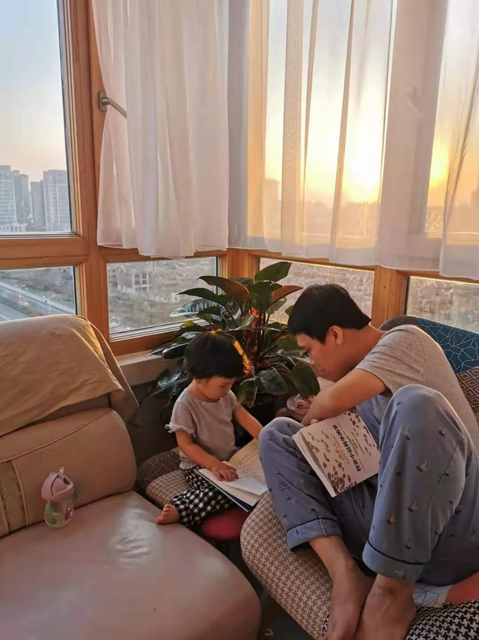 公子京正在陪女儿读书
