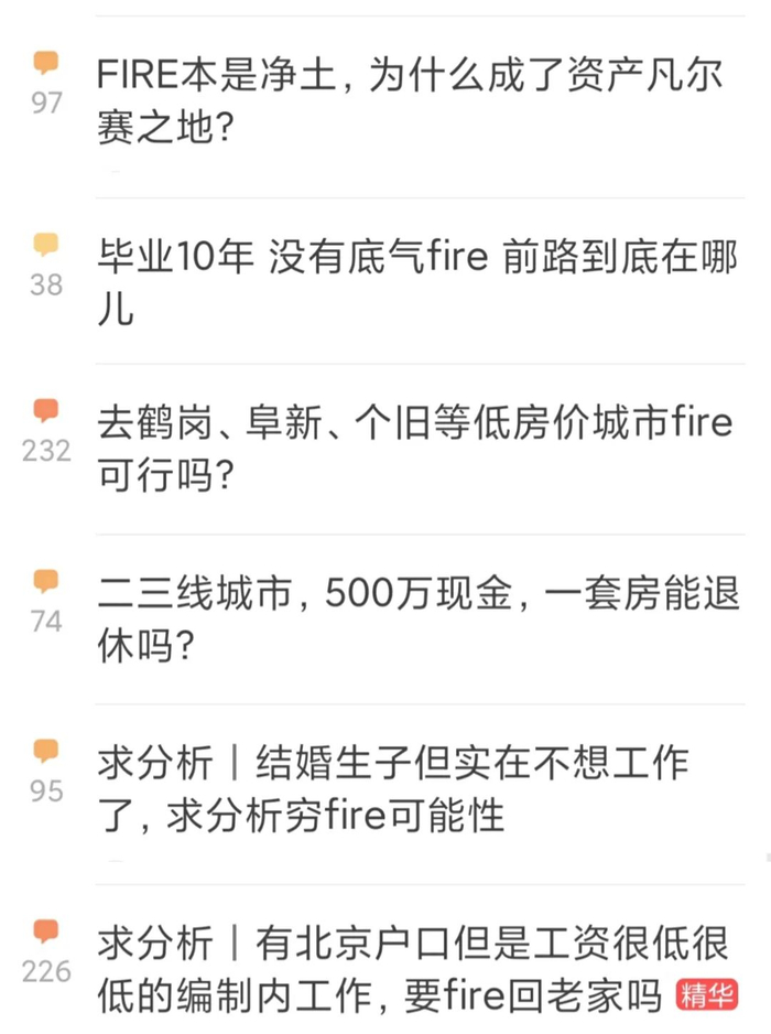 我觉得大家讲Fire的时候,其实讲的是“逃离”,就我观察到的现象来看,很多时候他们是闲不下来的,一两年后很多人还是会返回职场。只是想给自己放个假。