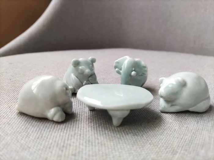她也自学了陶瓷制作,成了家里的摆件