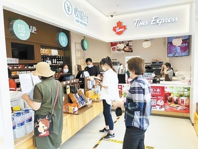 在位于崇文门的中国石化加油站,原先店里的易捷咖啡改头换面挂起了“Tims Express”字样的红色招牌,加拿大老牌咖啡Tims的红色枫叶标志随处可见。