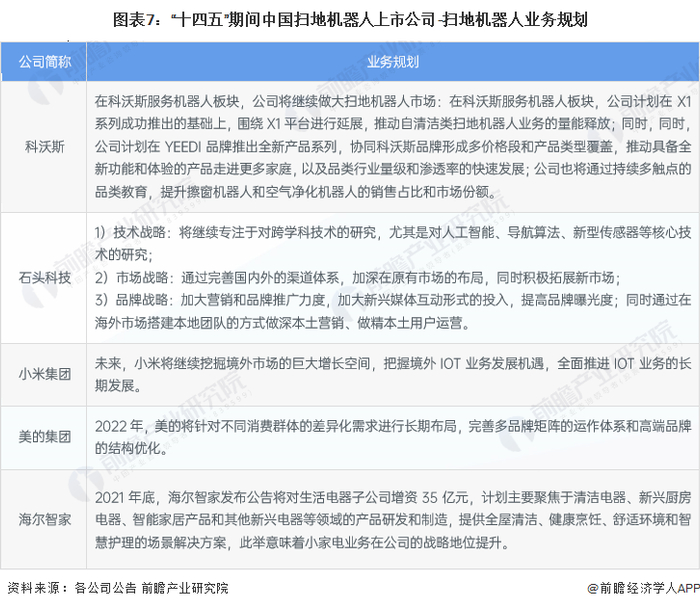 4、扫地机器人行业上市公司扫地机器人业务规划对比