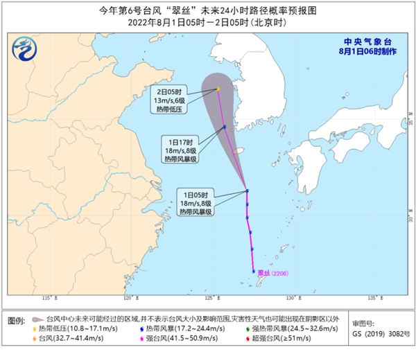 今年第6号台风“翠丝”(热带风暴级,英文名称:Trases;名字来源:柬埔寨;名字意义:啄木鸟)于昨天(7月31日)下午生成。下午2点钟其中心位于日本冲绳那霸市北偏西方向约90公里的东海南部海面上,北纬27.0度、东经127.5度, 8级(18米/秒),998百帕,七级风圈半径120-280公里。
