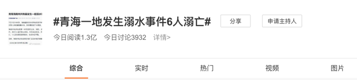 据央视新闻报道,7月31日14时许,青海省海南藏族自治州共和县龙羊峡镇阿乙亥村,1名儿童因失足落入农田灌溉蓄水池,其亲属陆续下水营救,造成6人溺水死亡。