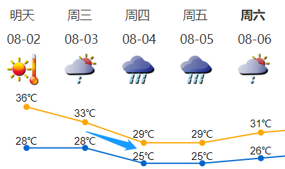 8月2日高温天气持续,最高气温35-37℃,中北部及人口密集区可达38℃或以上,午后易出现局地雷雨。