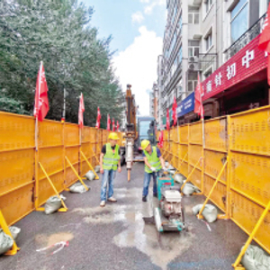 记者在现场看到,工作人员已在施工区域安装围挡,一些工人正在用割道机对道路开挖施工。同时,还有一组工作人员奔走在各个单元,张贴施工告知单。新天地小区6号楼3单元的居民高大爷告诉记者,该小区2005年进户,十几年时间过去,管线已经老化了,有时水压不稳,自来水中会有杂质。听说小区即将进行二次供水改造,他特意到现场查看,期盼早日享受到二次供水改造的成果。