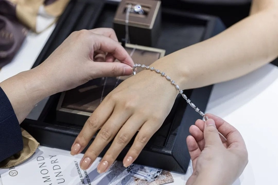 上海的一家国外培育钻石品牌专卖店,有人正在试戴手链 / 视觉中国